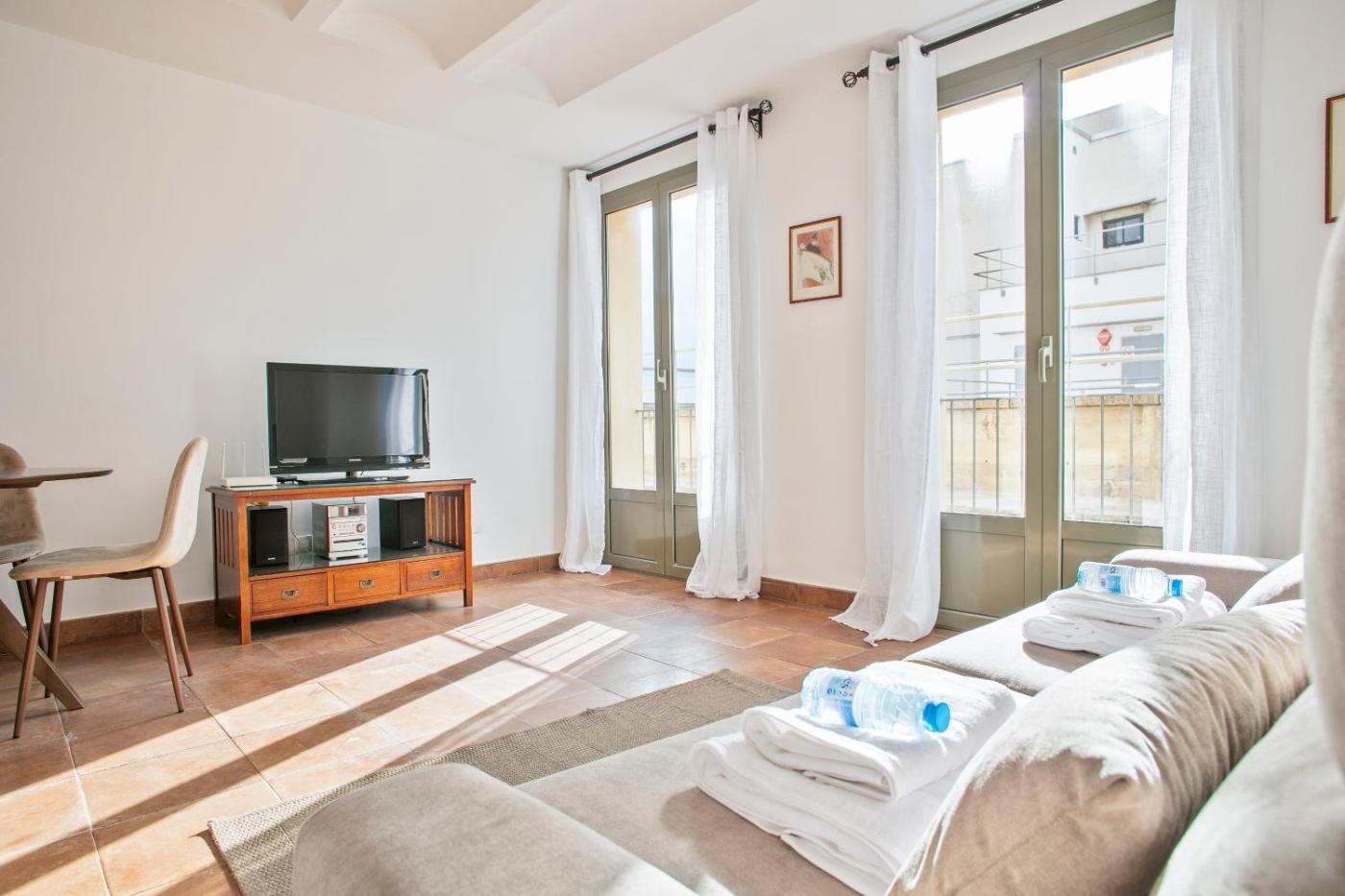 Alcam Dali ofrece alojamiento con aire acondicionado en el centro de Barcelona, a 15 min a pie de Platja de Sant Miquel, a 400 metros de Santa MarÃa del Mar y a 7 min a pie de Plaza Real. Hay wifi gratis en todo el alojamiento.