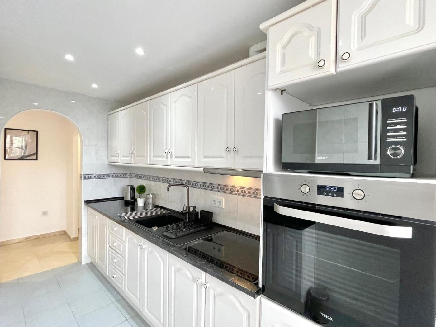 Apartamento de 2 dormitorios con vistas al mar. The pool with a view is the standout feature of this apartment. This spacious apartment features 1 living room, 2 separate bedrooms and 2 bathrooms with a walk-in shower and free toiletries. Meals can be prepared in the kitchen, which features a stovetop, a refrigerator, an oven and a microwave. The air-conditioned apartment features a flat-screen TV with streaming services, a washing machine, a private entrance, a tea and coffee maker as well as sea views. The unit has 4 beds.