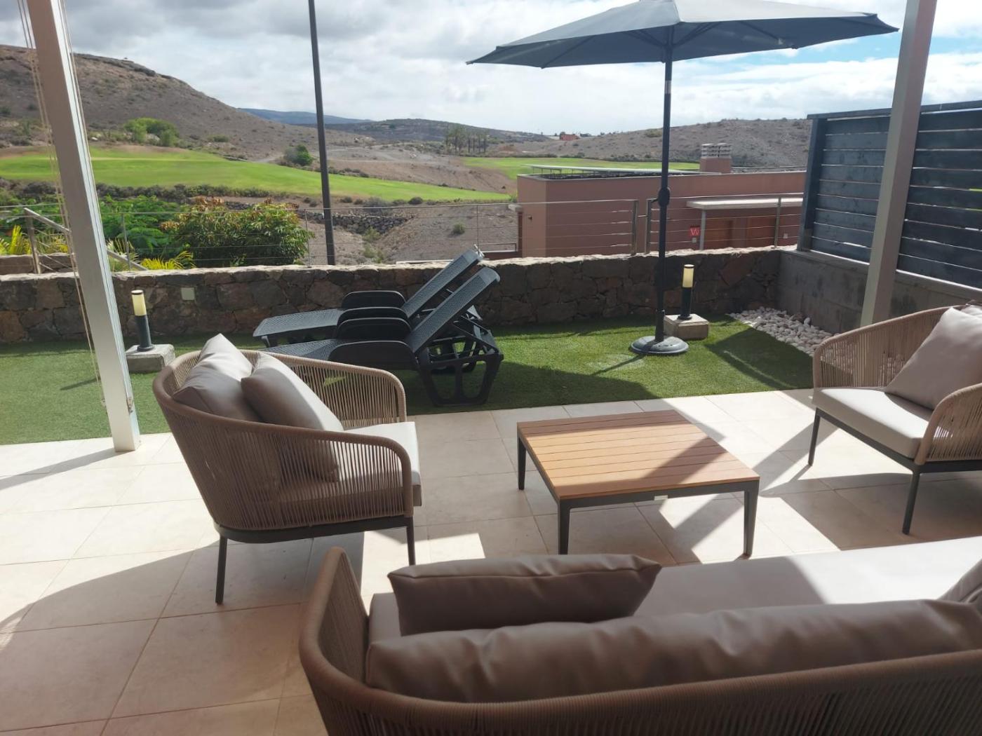 Villa Vista Golf Salobre - Maspalomas self-sufficient with pool heating, que tiene piscina al aire libre, jardÃn y terraza, dispone de alojamiento en Maspalomas con wifi gratis y vistas a la montaña. Este alojamiento ofrece piscina privada y parking privado gratis.