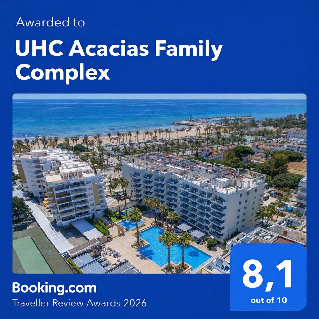 UHC Acacias Family Complex está a 200 metros del centro de Salou y a 2 min a pie de Platja de Llevant. Ofrece alojamiento tienen aire acondicionado, terraza, piscina de temporada al aire libre y jardín. Hay wifi gratis y parking privado en el propio alojamiento.